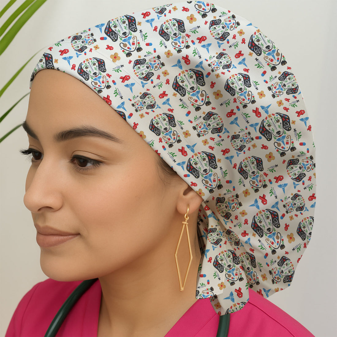 Dachshund Medical Icon Pattern Scrub Cap, Bouffant Scrub Caps for Women