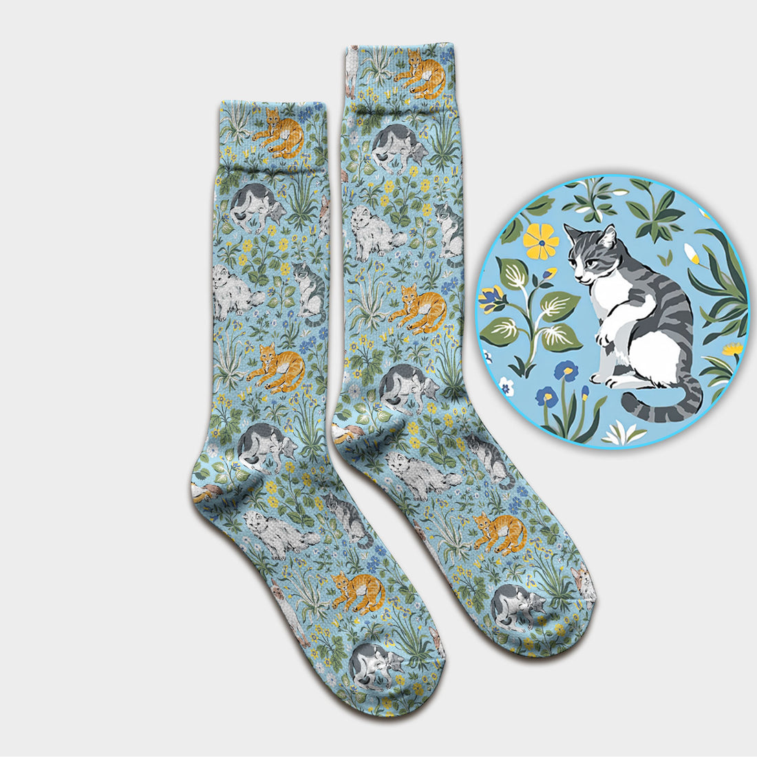 Floral Cat Garden Medical Pattern Socks, Socks for Nurse Doctor