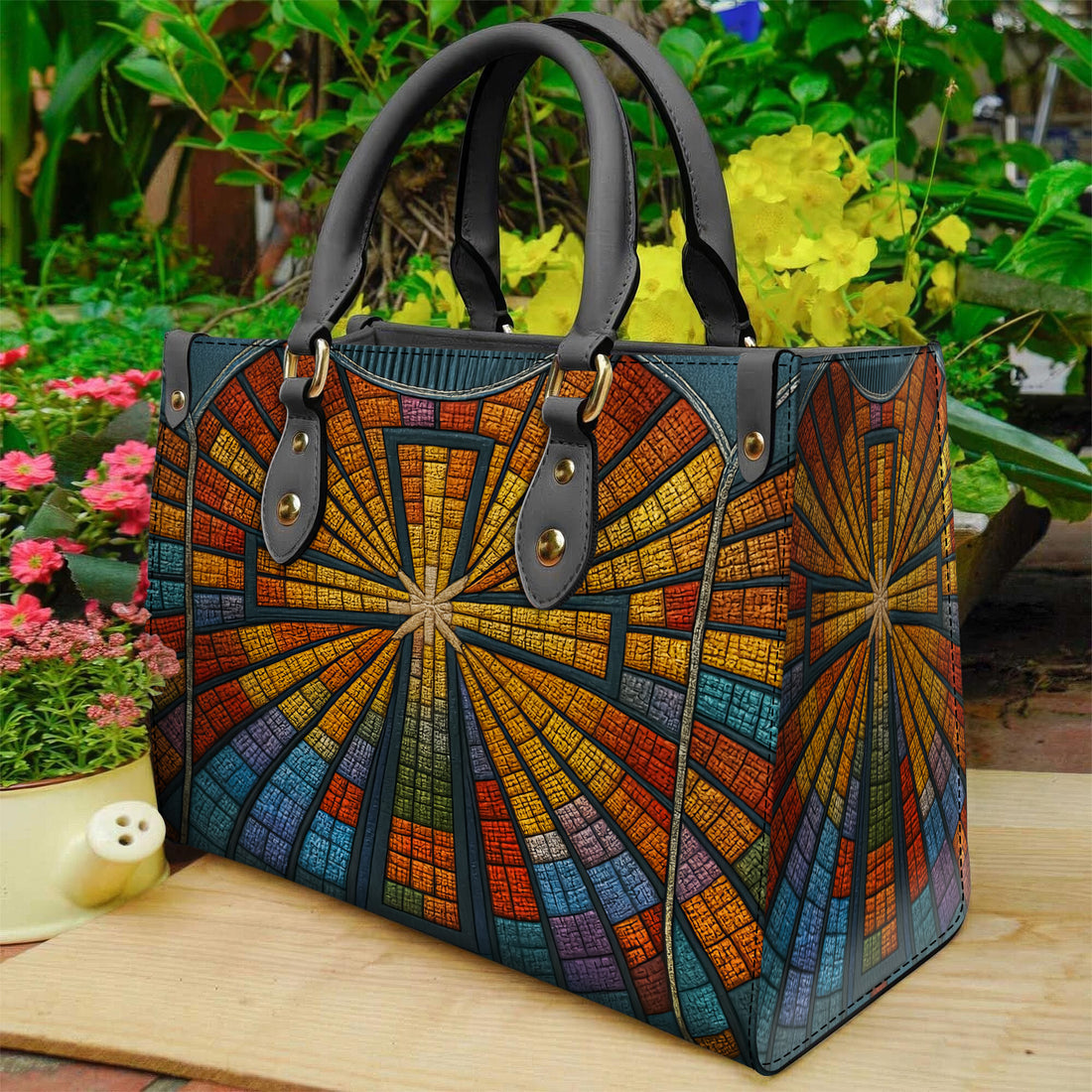 Stained Glass Cross Handbag for Women, Christian Tote Purse with Colorful Church Window Design, Religious Faith Bag Gift