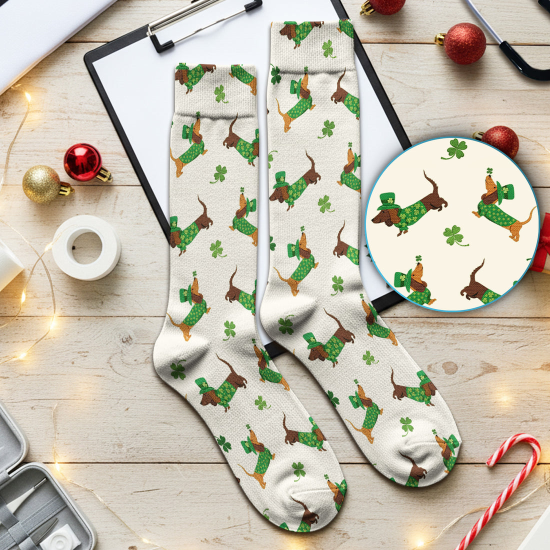 St. Patrick’s Day Dachshund Scrub Socks, Funny Wiener Dog Nurse Sock, Breathable Fabrics Nursing Uniform