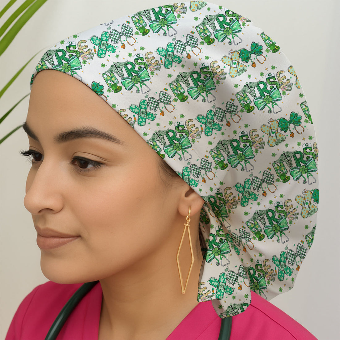 Funny Goose Nurse Shamrock Scrub Cap, St. Patrick’s Day Nurse Pattern Hat, Breathable Fabrics Nursing Uniform