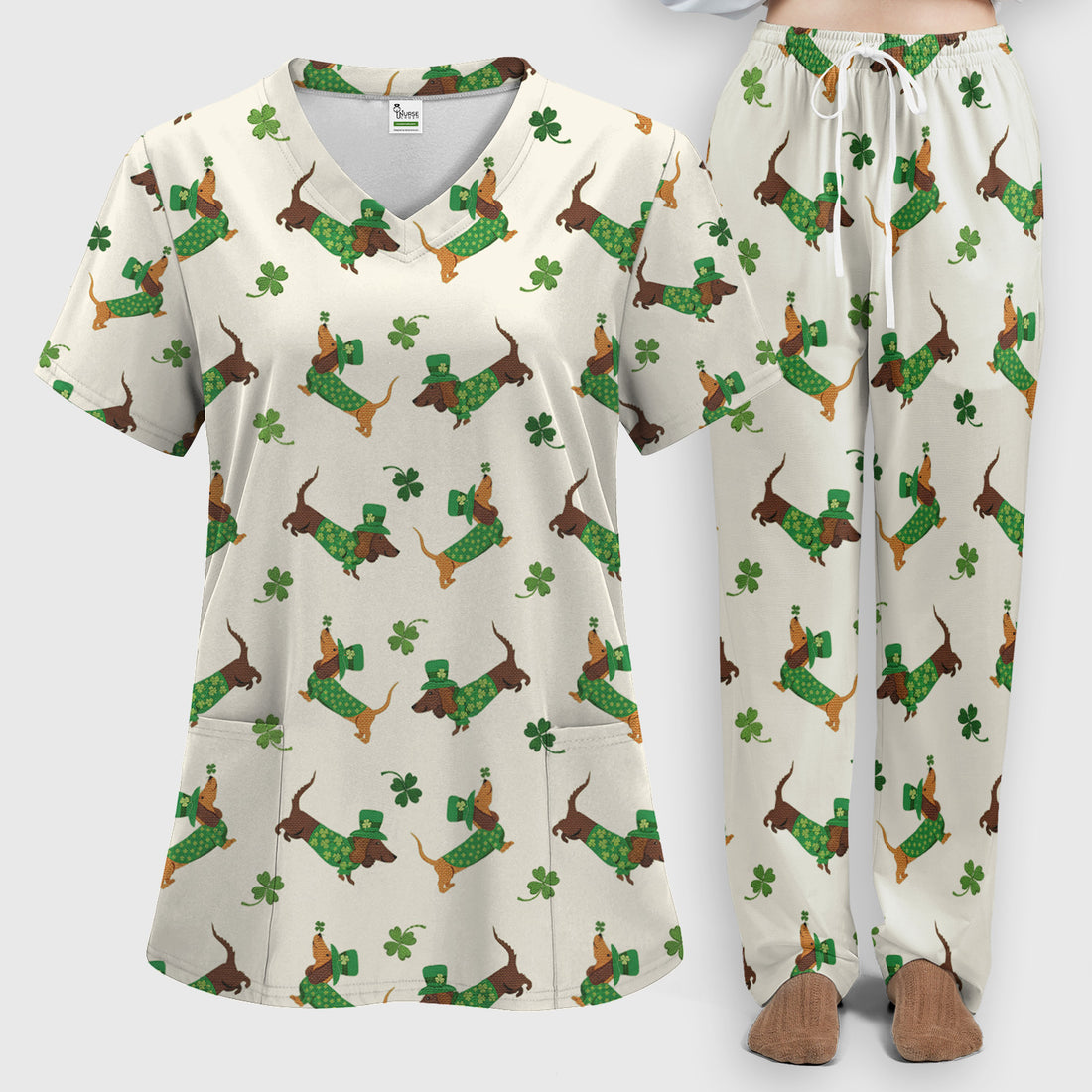 St. Patrick’s Day Dachshund Scrub Set, Funny Wiener Dog Nurse Shirt, Breathable Fabrics Nursing Uniform