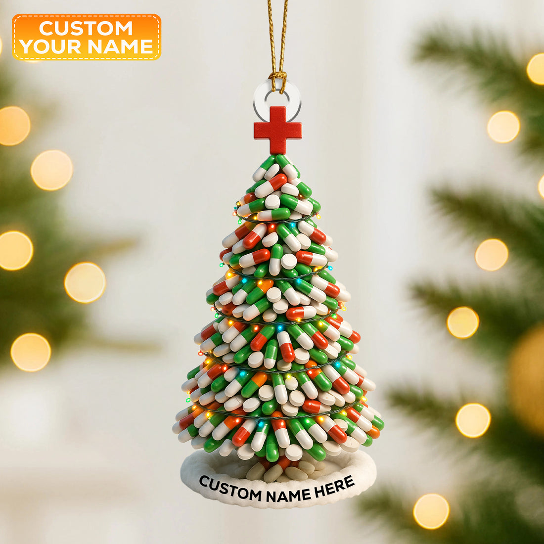 Personalized Pharmacy Christmas Ornament – Funny Medicine Tree Design – Cute Holiday Gift for Nurses, Doctors, and Pharmacists