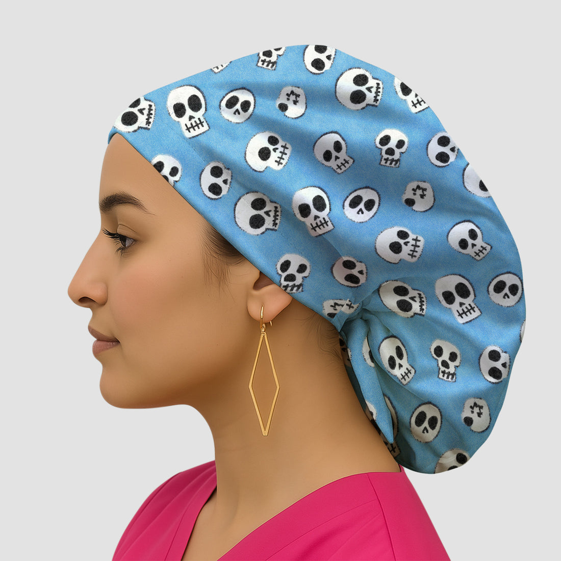 Blue Skull Halloween Pattern Scrub Cap, Breathable Fabrics Caps Uniform