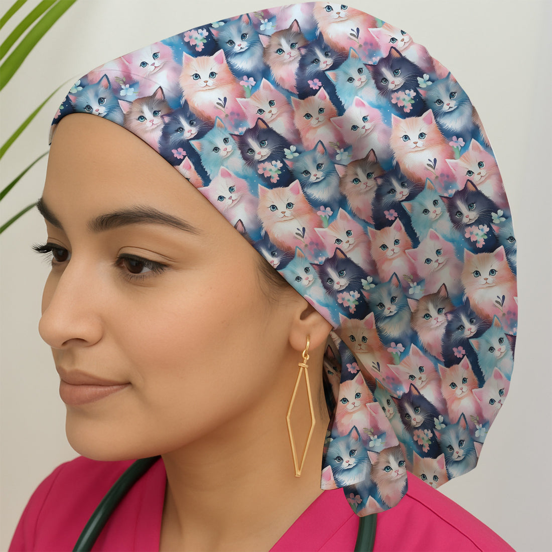 Pastel Kitten Scrub Cap, Cute Aesthetic Cat Surgical Hat for Nurses
