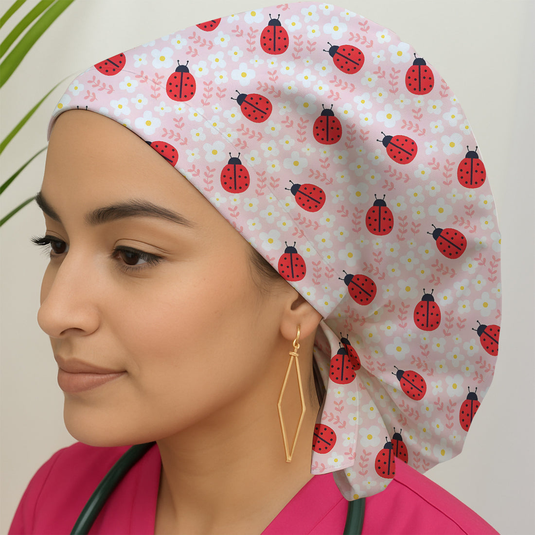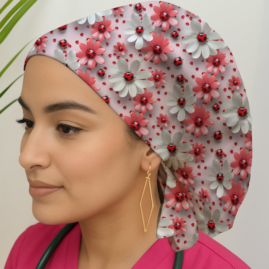 Cute Ladybug Blossom Print Scrub Cap, Bouffant Scrub Caps for Women