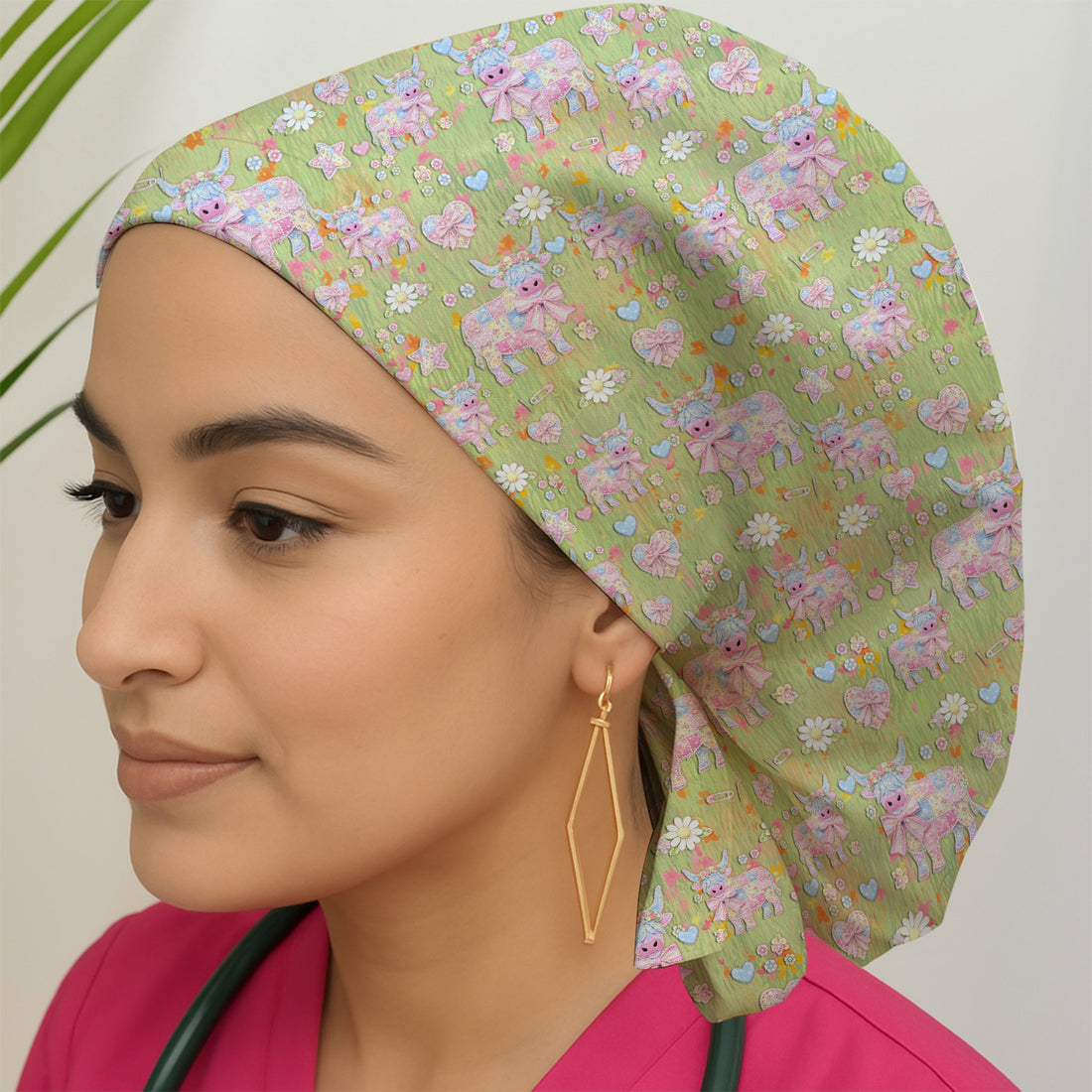 Cute Girly Cow Daisy Pastel Pattern Scrub Cap, Breathable Fabrics Caps Uniform