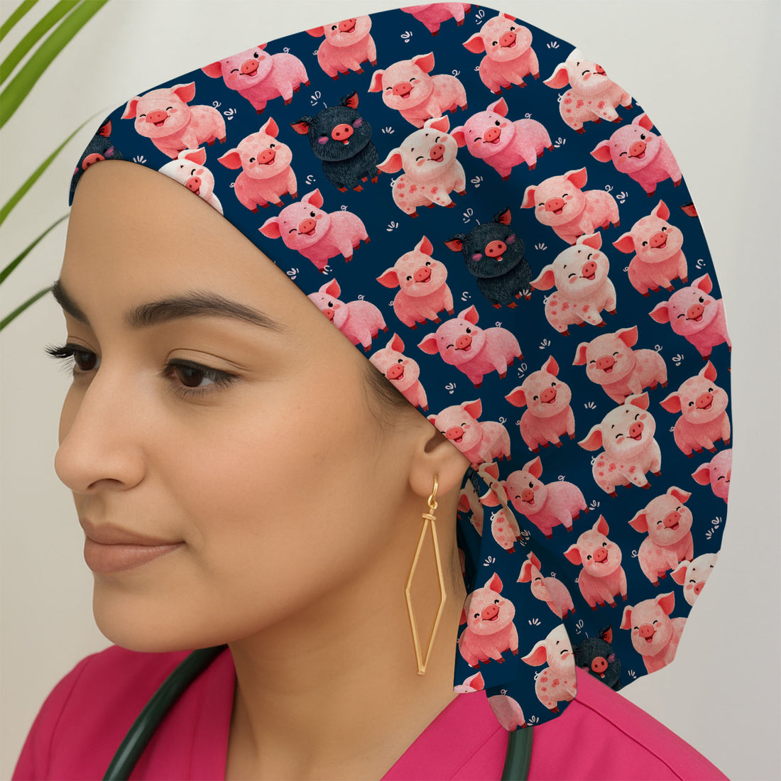 Funny Farm Pig Cartoon Pattern Cap, Bouffant Scrub Caps for Women