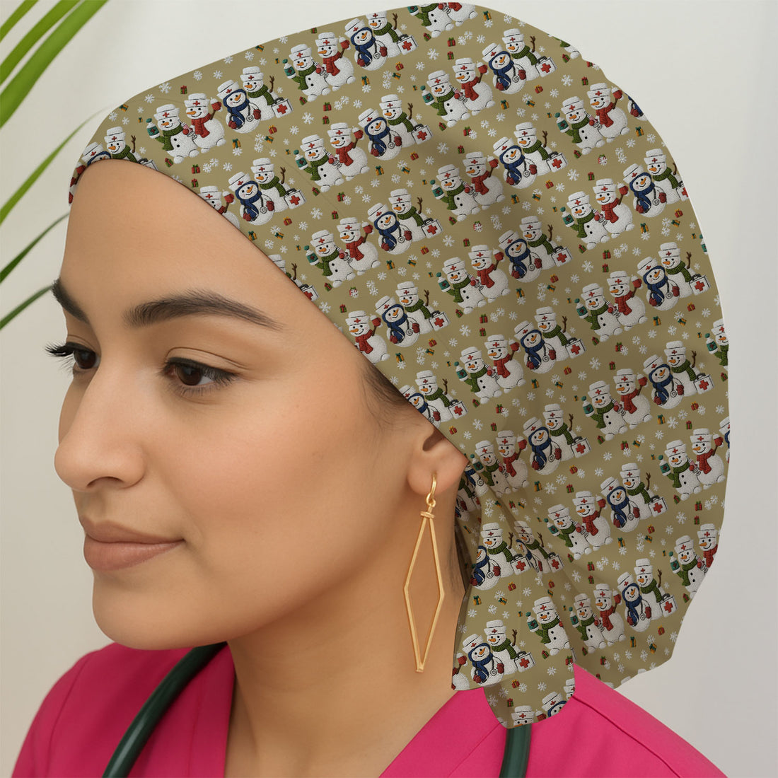 Cute Christmas Snowman Nurse Pattern Print Cap, Bouffant Scrub Caps for Women
