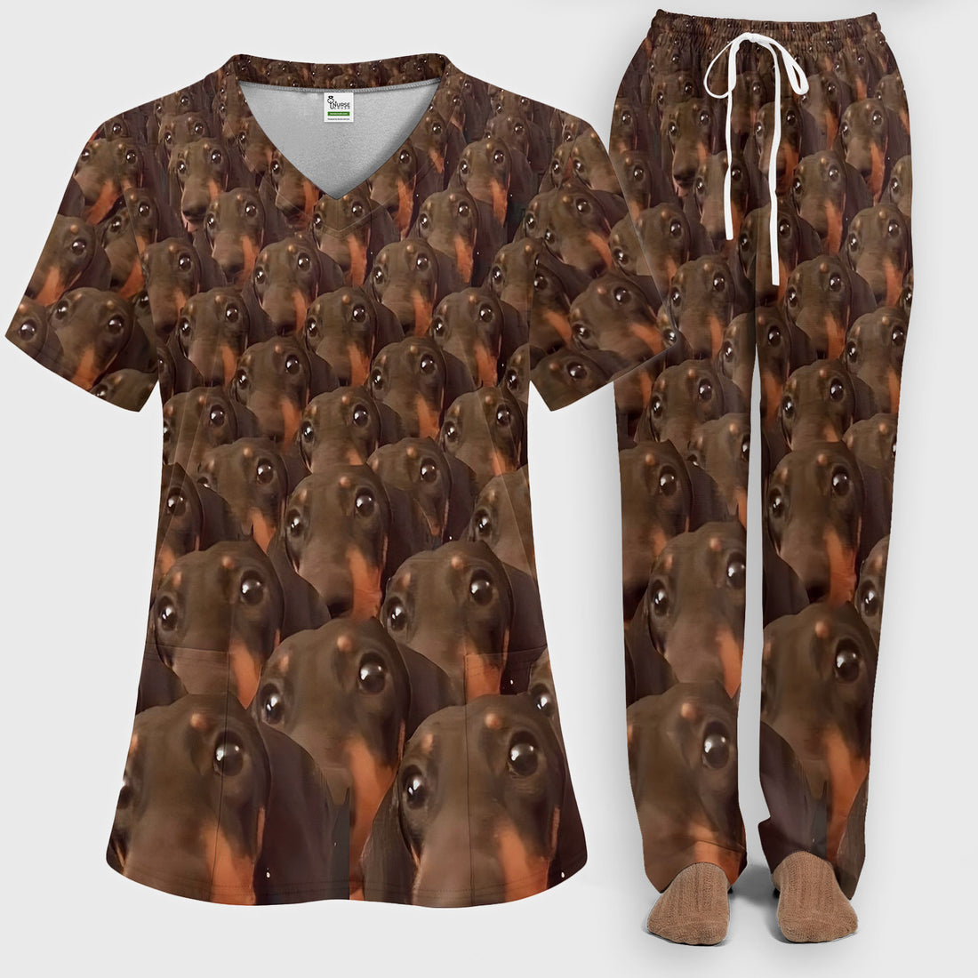 Funny Dachshund Scrub Set for Women - Cute Sausage Dog Pattern Med Uniform - Weiner Lover Gift for RN LPN CNA