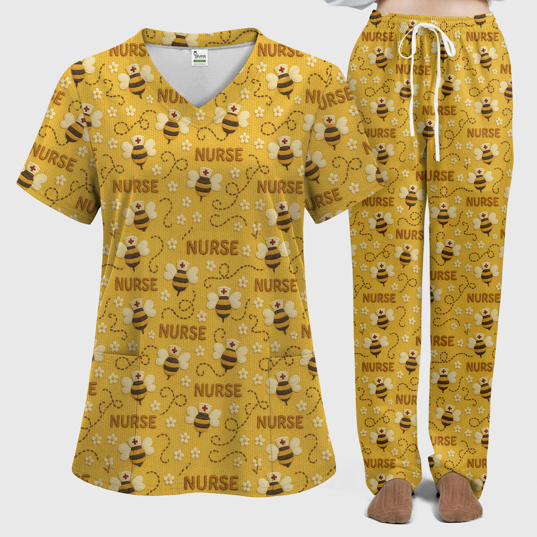 Honey Bee Nurse Scrub Set – Cute Bumblebee Medical Pattern – Cheerful Uniform for Nurses, Vets and Healthcare Workers