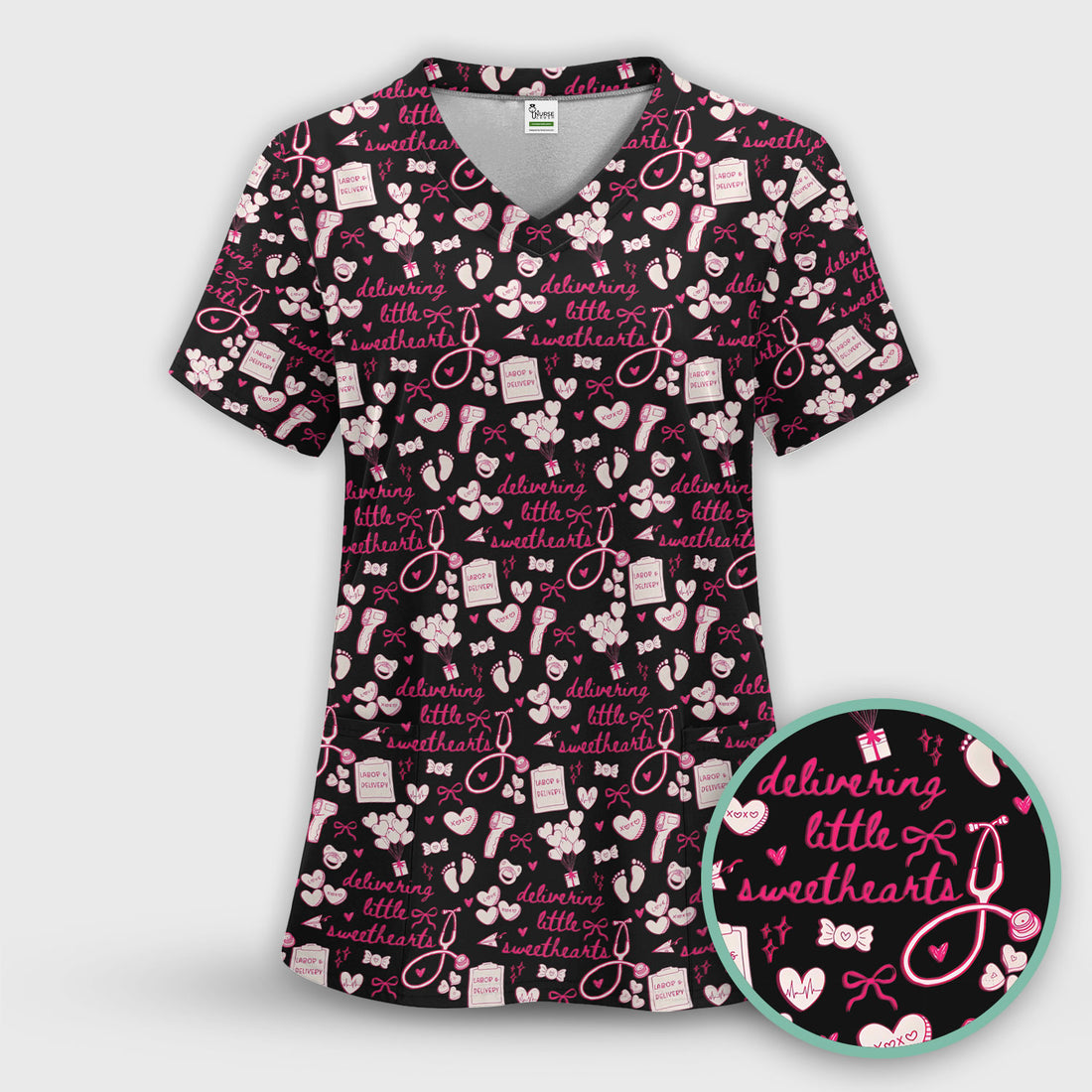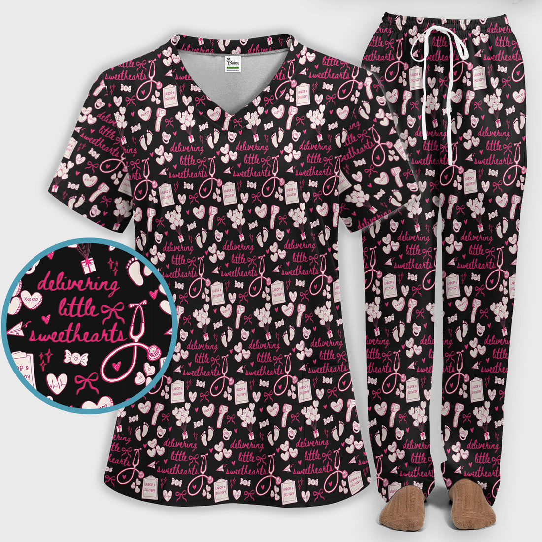 Valentine Heart Nurse Scrub Set, Cute Nursing Pattern Shirt, Breathable Fabrics Nursing Uniform