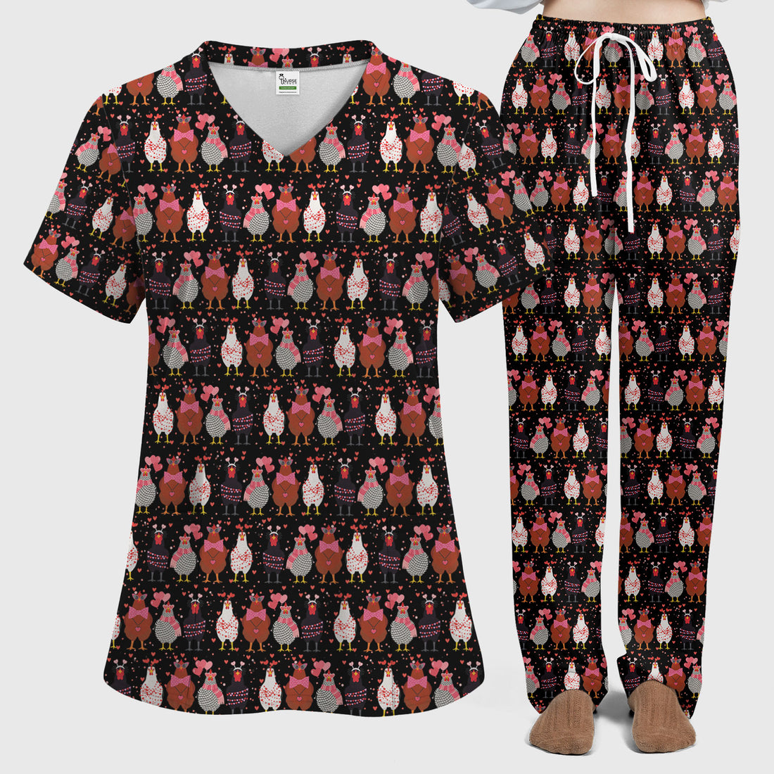 Funny Chicken Valentine Scrub Set, Chicken Pattern Scrub Shirt For Nursing, Valentine Gift For Nurse