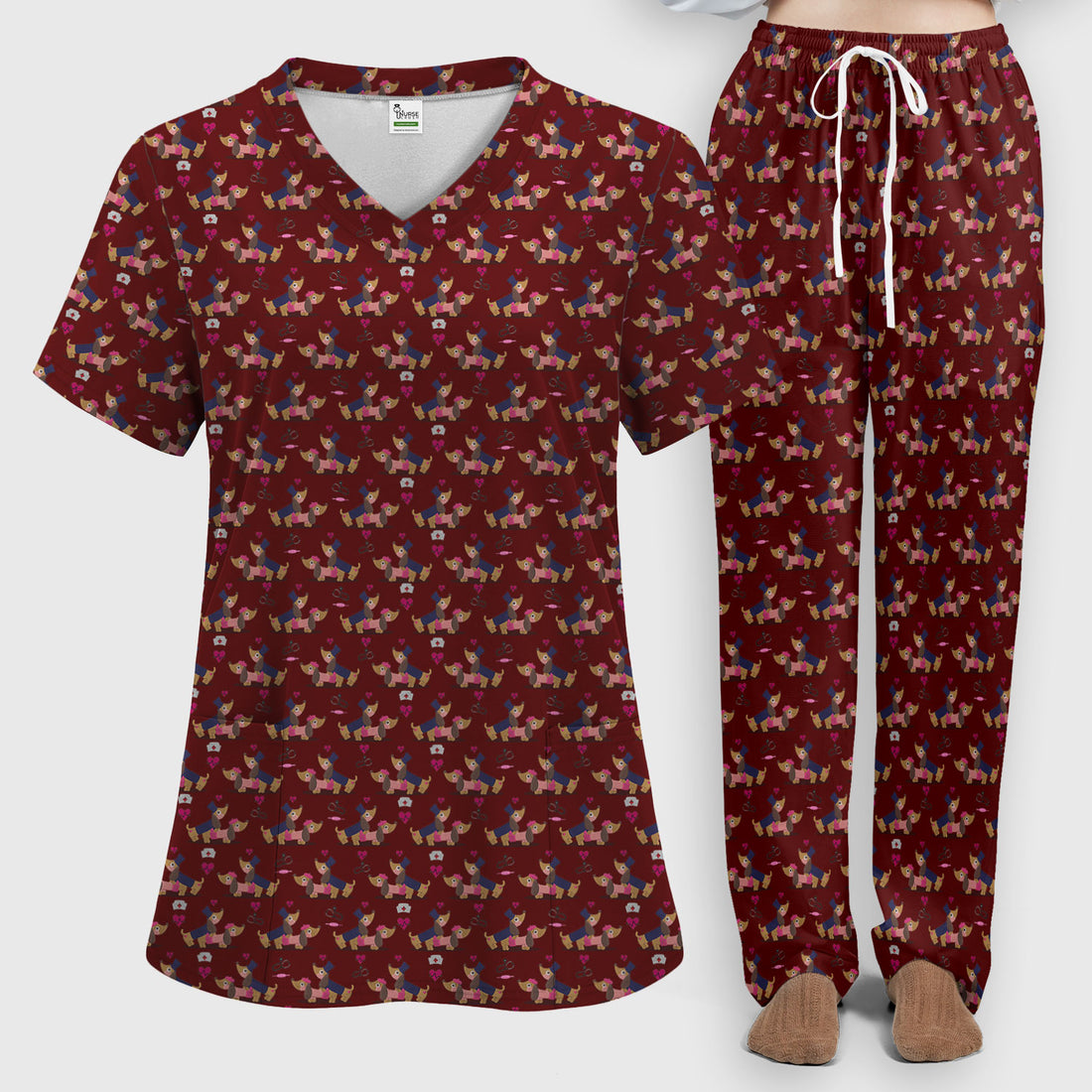 Valentine Dachshund Couple Scrub Set - Funny Nursing Gift for Women