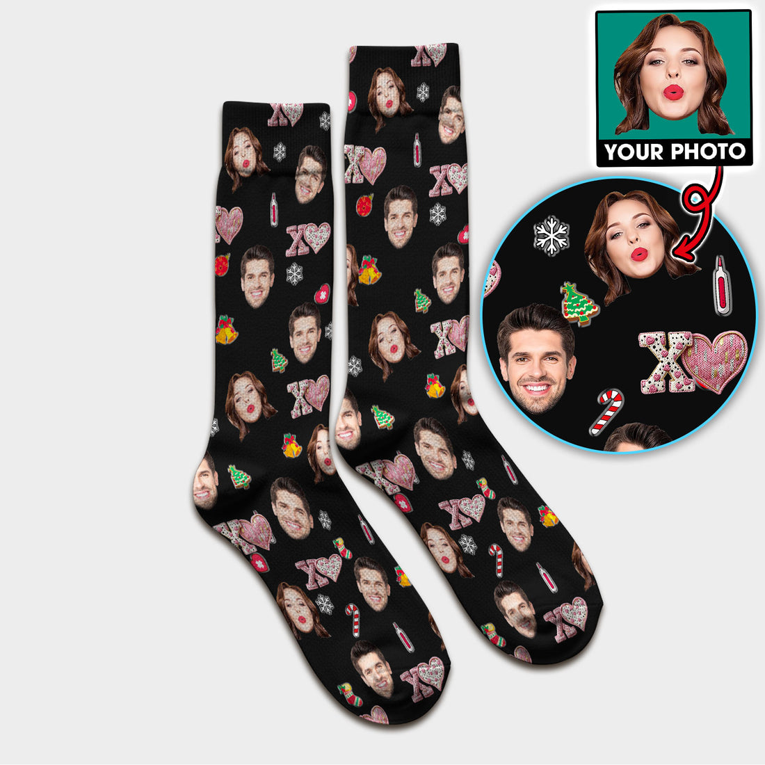 Custom Face Pattern XOXO Scrub Sock, Personalized Photo Scrub Socks, Breathable Fabrics Nursing Uniform