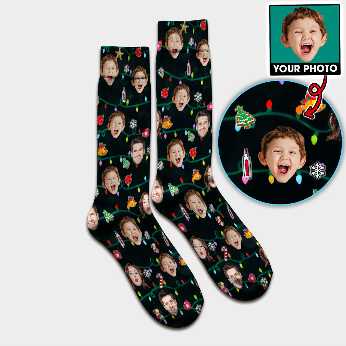 Personalized Christmas Photo Scrub Socks, Funny Xmas Custom Face Scrub Sock, Breathable Fabrics Nursing Uniform