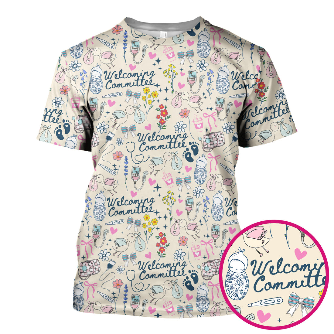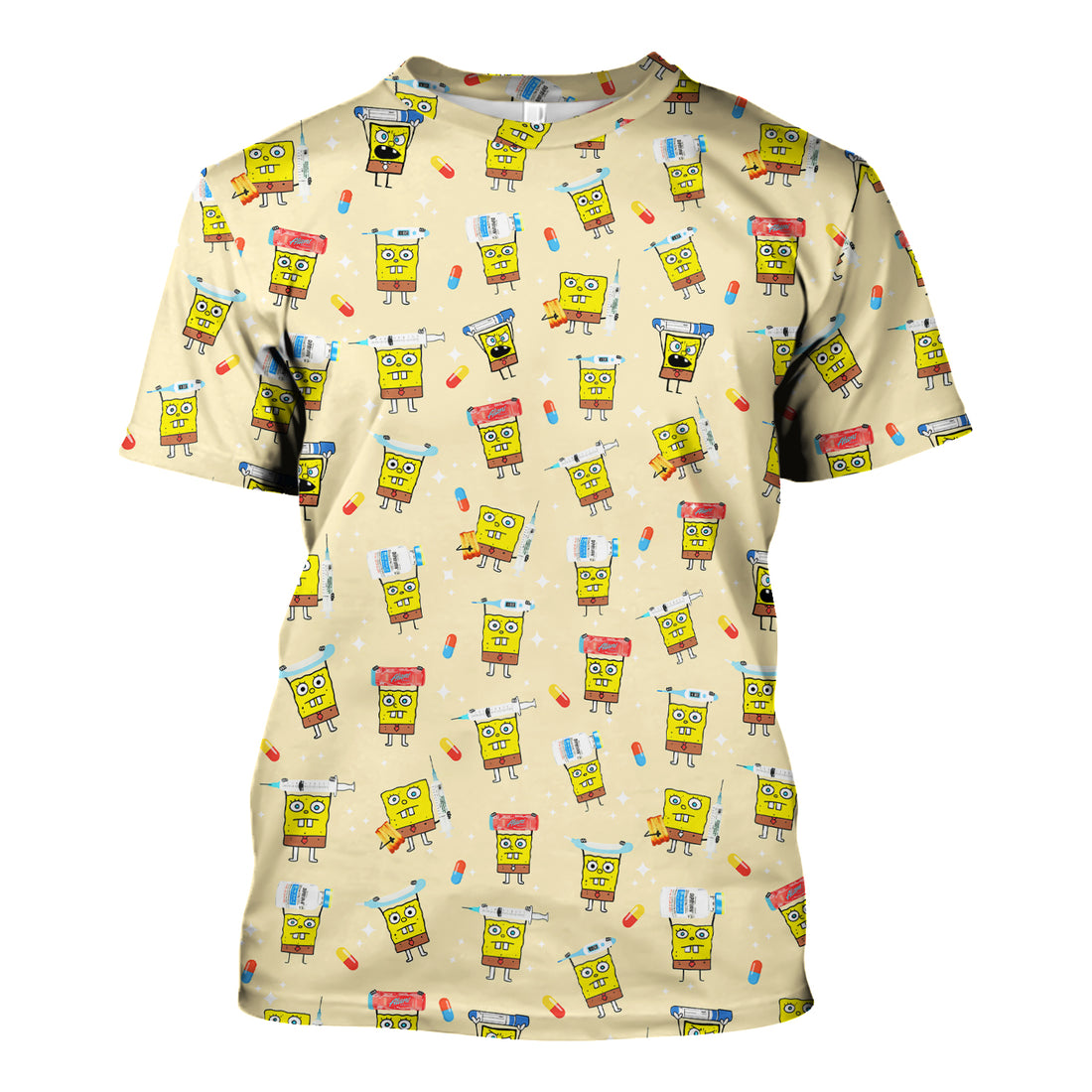 Funny Cartoon Character Shirt - All Over Print Graphic Tee for Women - Gift for RN LPN Healthcare Workers