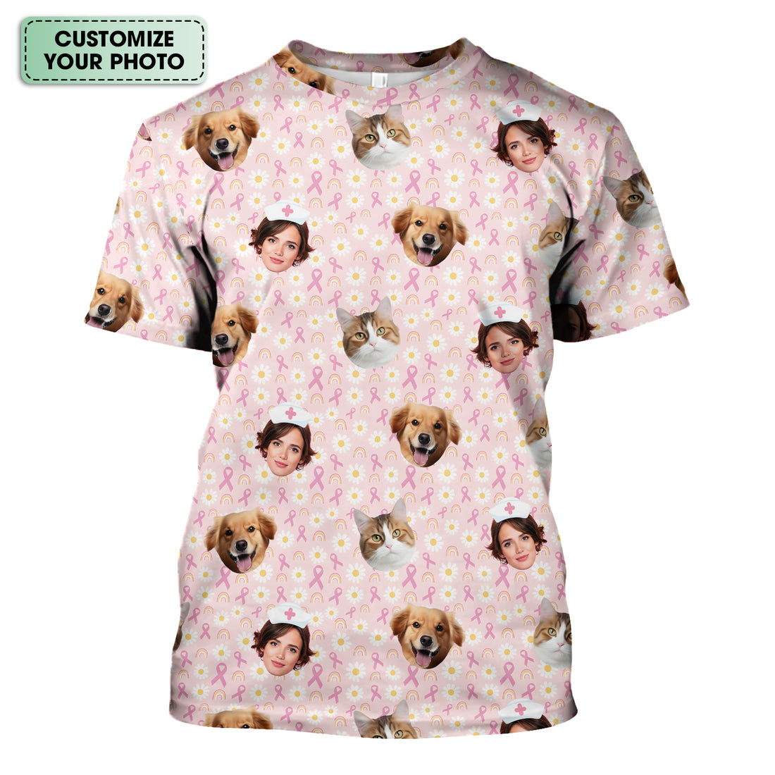 Custom Face Nurse Shirt for Women - Cute Breast Cancer Awareness Graphic Tee - Gift for RN LPN CNA