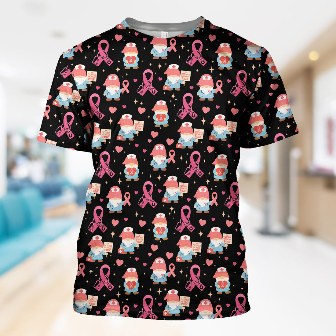 Pink Ribbon Nurse Shirt for Women - Cute Breast Cancer Awareness Gnome - Gift for Healthcare Workers RN LPN