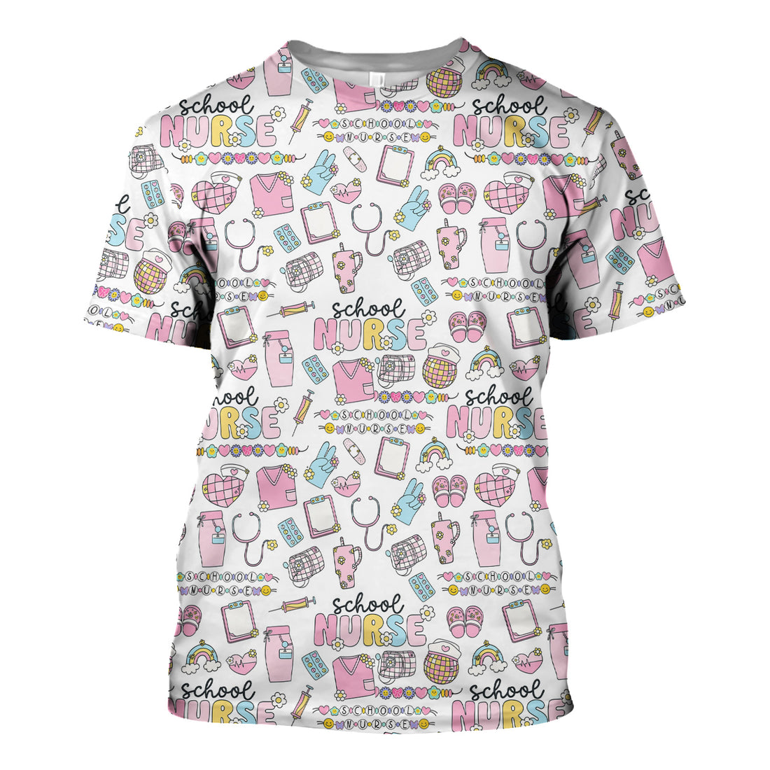 Funny School Nurse Life Shirt - Cute Medical Icons Graphic Tee - Gift for Women RN LPN Healthcare Workers