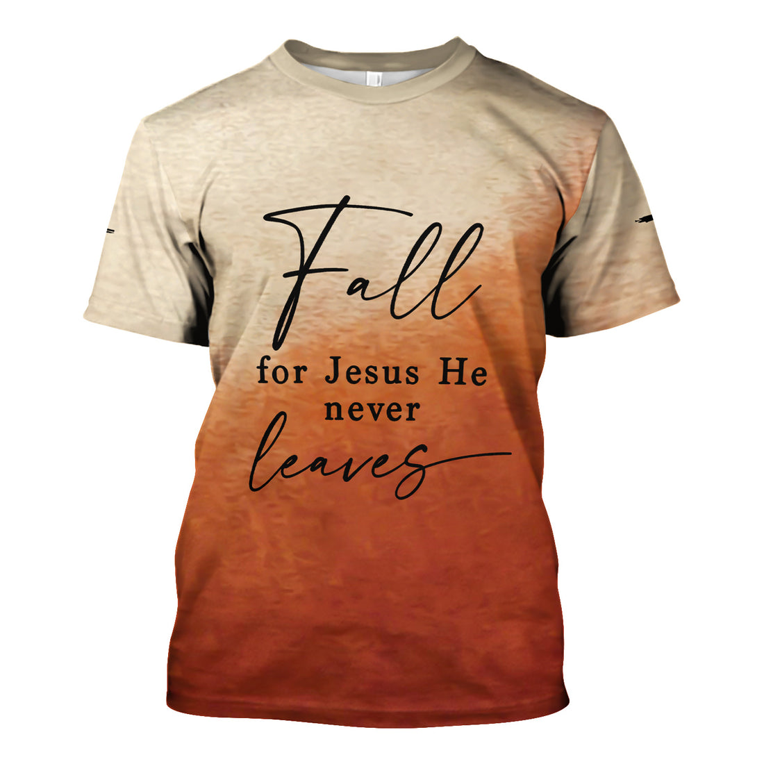 Personalized Christian Nurse T-Shirt - Fall for Jesus He Never Leaves Design - Gift for Women RN LPN & Healthcare Workers