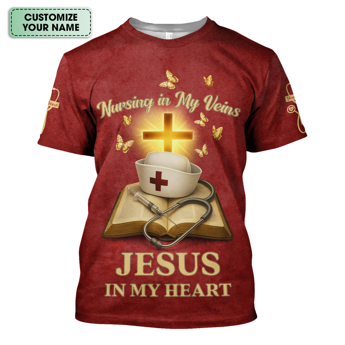 Personalized Christian Nurse Shirt - Jesus in My Heart Quote - Available in Multiple Colors - Gift for Women RN LPN