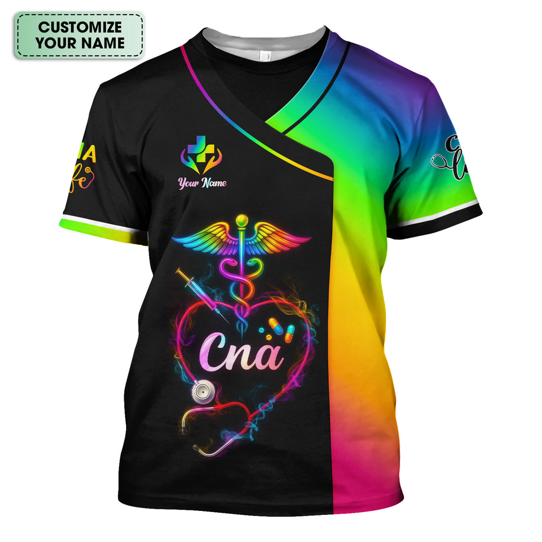 Custom Rainbow CNA Nurse Shirt - Stethoscope Heart & Caduceus Design - Gift for RN LPN Healthcare Workers
