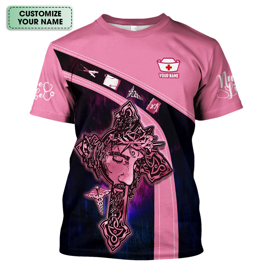 Personalized Christian Nurse T-Shirt - Jesus on the Cross Faith Graphic Tee - Gift for RN LPN CNA Healthcare Professionals