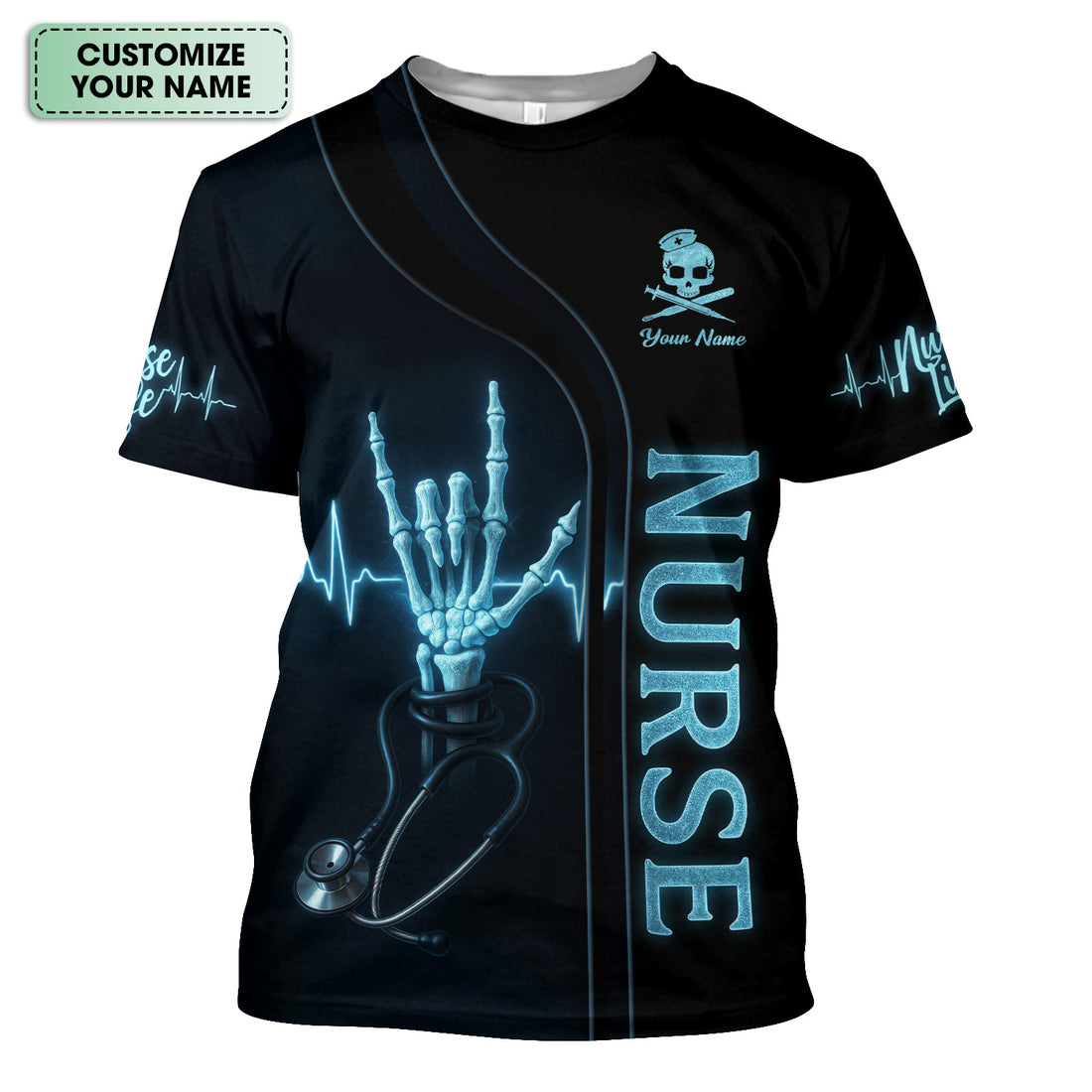 Custom Funny RN Rock Shirt for Nurses - Skeleton Hand Stethoscope Nurse Tee - Gift for RN, CNA, LPN, Medical Staff