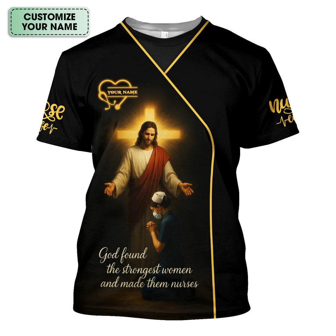 God Found the Strongest Women Nurse Shirt - Christian Faith Scrub Top for RN CNA - Custom Name Spiritual Medical Uniform Gift