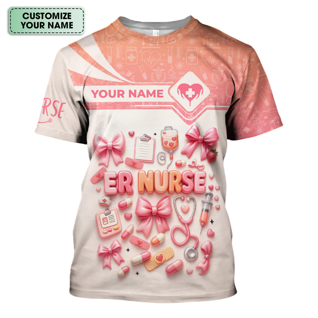 Personalized ER Nurse Scrub Shirt with Name - Cute All Over Print Medical Uniform - Funny Gift for Emergency Room Nurses