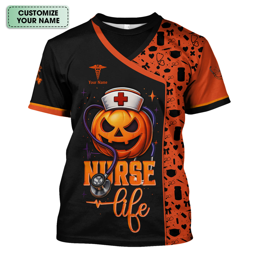 Personalized Funny Halloween Nurse Shirt for Women - Custom Name Graphic Tee with Pain Scale - Gift for Medical Staff, Healthcare Workers