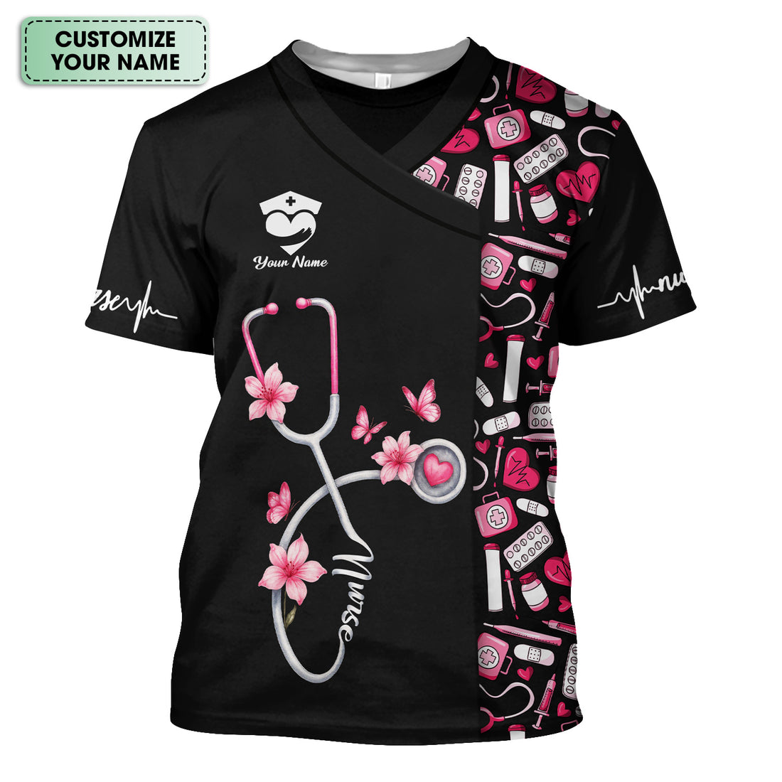 Personalized Nurse Shirt for Women - Pink Stethoscope Floral Medical Design - Cute Gift for RN, CNA, LPN, Medical Staff