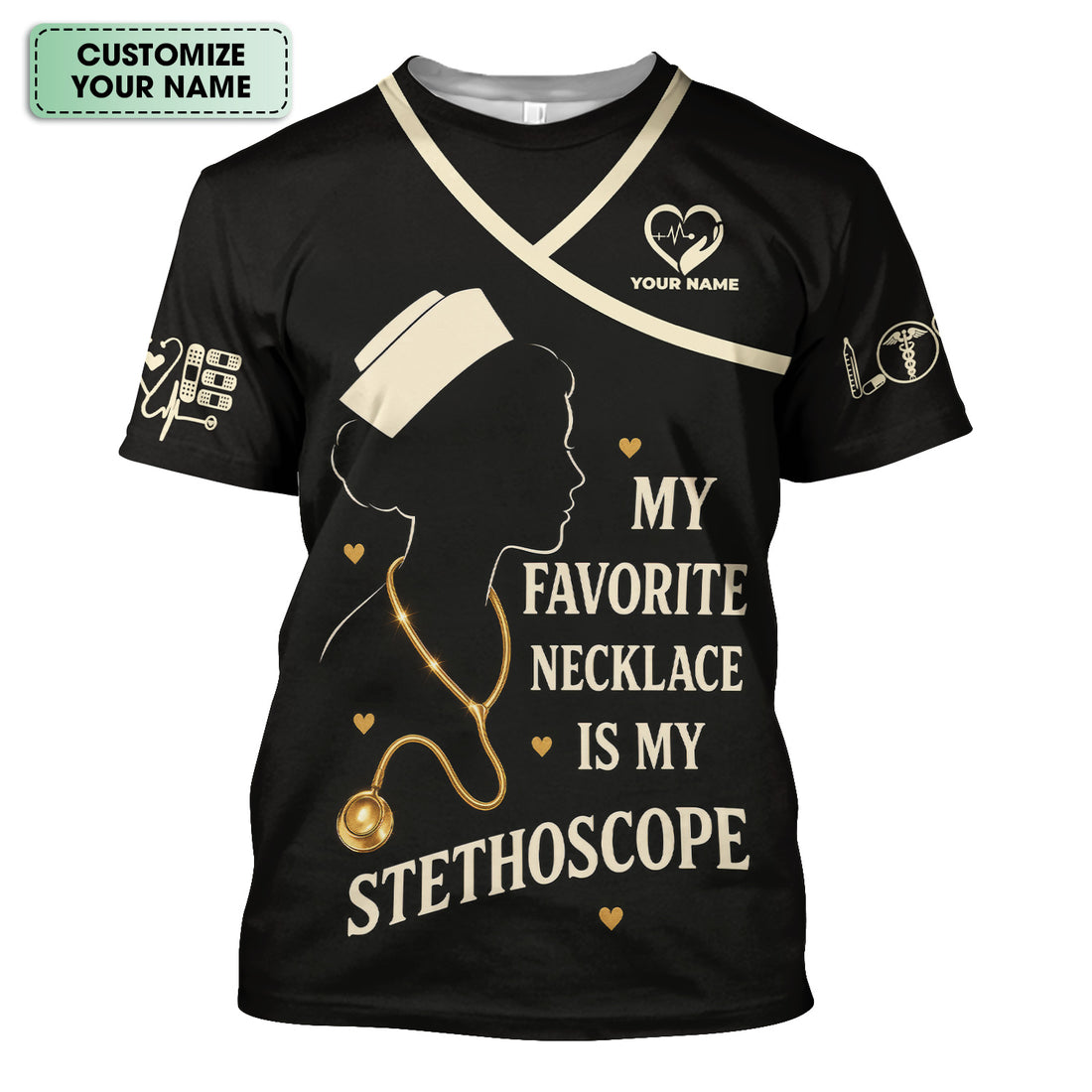 Personalized Funny Nurse Graphic Shirt - Stethoscope Necklace Quote - Gift for Registered Nurse, EMT, Medical Assistant