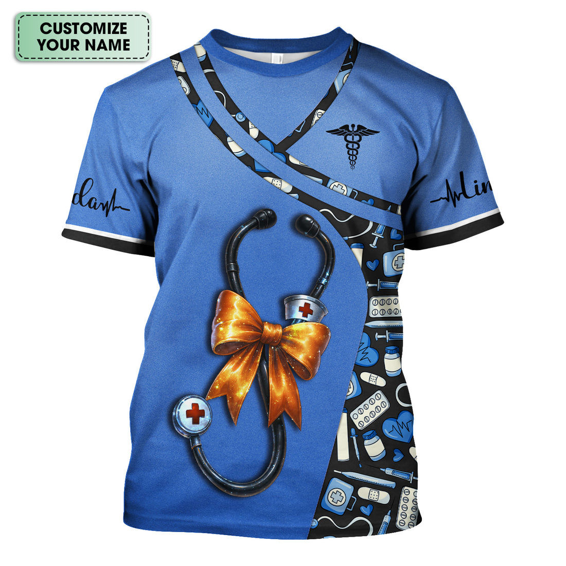 Custom Nurse Shirt for Women - Cute Stethoscope Bow Design - Gift for CNA RN LPN Appreciation Week
