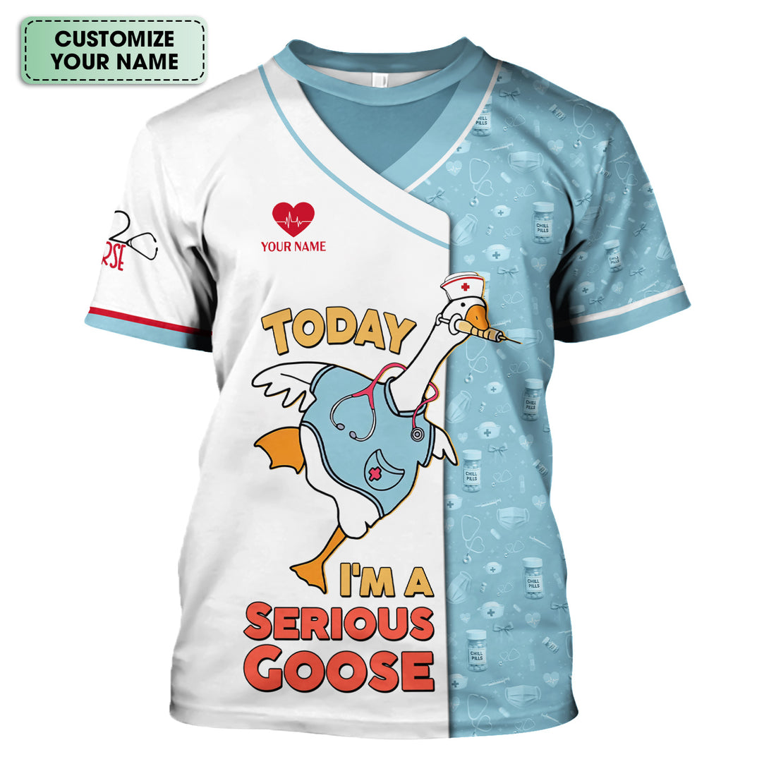 Personalized Goose Nurse T-Shirt for Women - Silly Medical Icons Design - Custom Name Gift for Healthcare Workers & Medical Staff