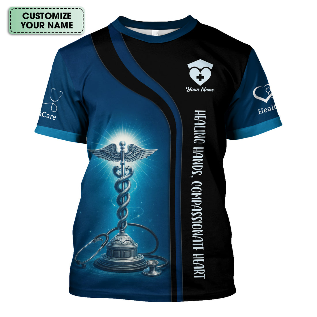 Healing Hands Compassionate Heart Shirt - Personalized Medical Apparel Gift - Caduceus Design for Nurse RN CNA LPN Healthcare Workers