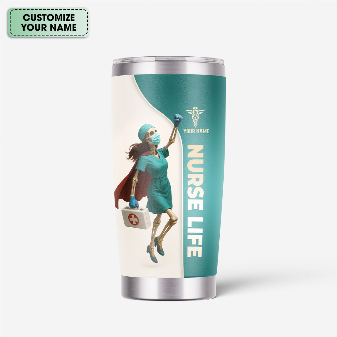 Nurse Superhero Tumbler - Personalized Skeleton Nurse Travel Mug - Custom Gift for RN, LPN, CNA
