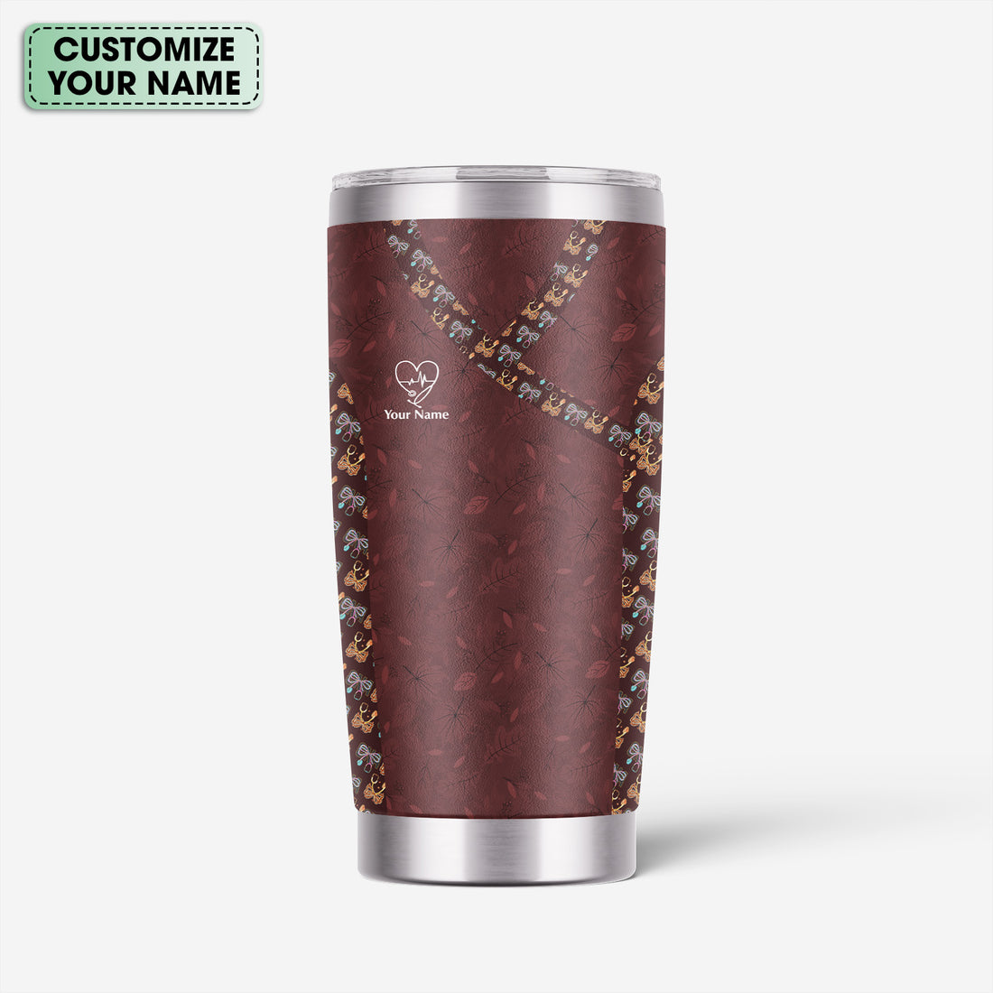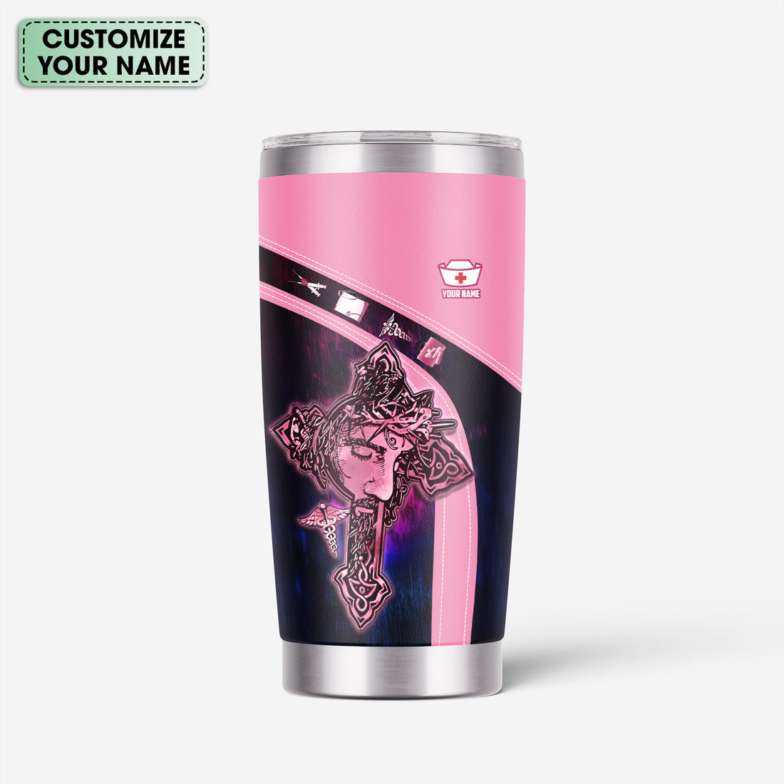 Personalized Christian Nurse Tumbler - Jesus Cross & Stethoscope with Butterflies - Custom Name Gift for Women RN LPN