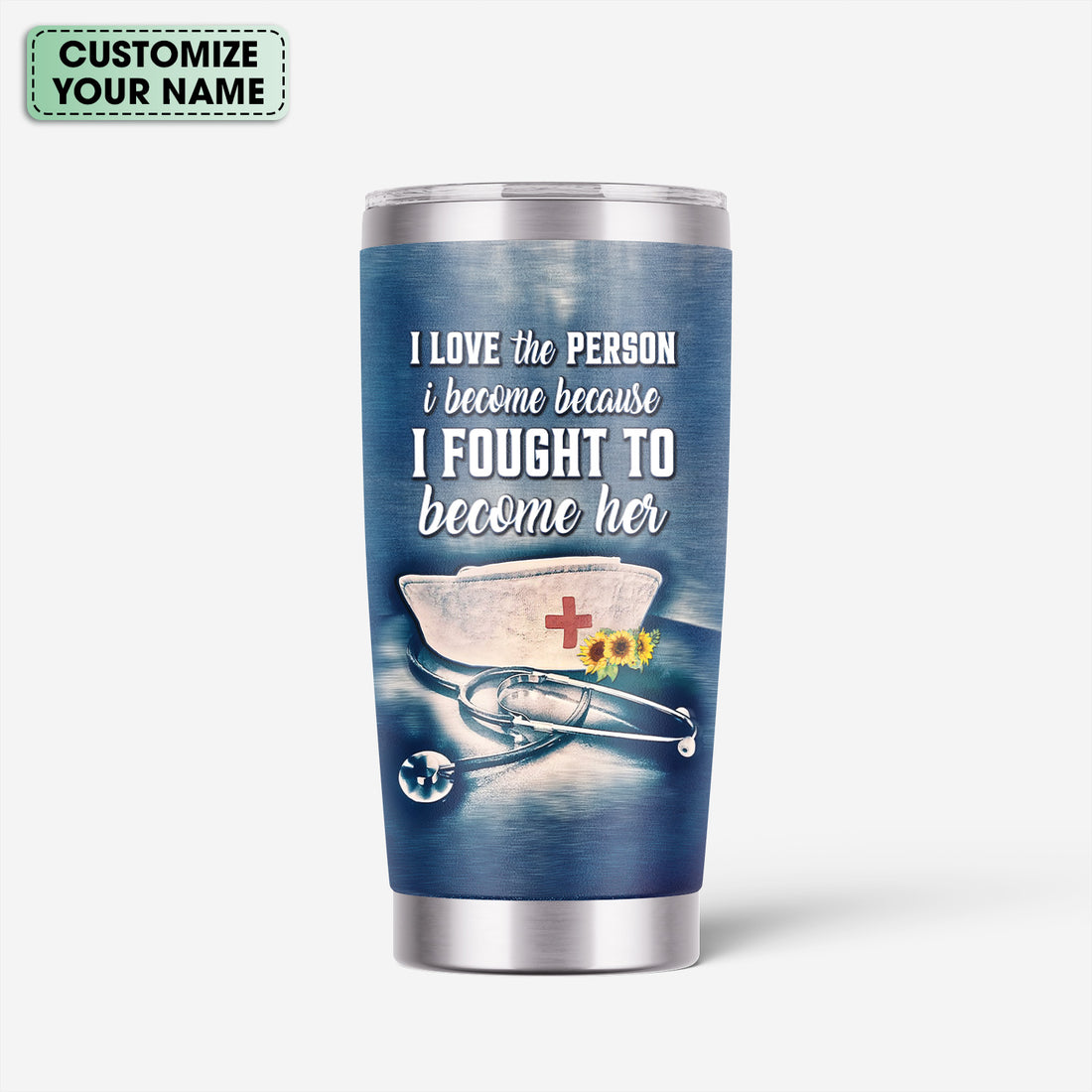 Personalized RN Nurse Tumbler - I Fought To Become Her Quote - Gift for RN CNA LPN Nursing Appreciation