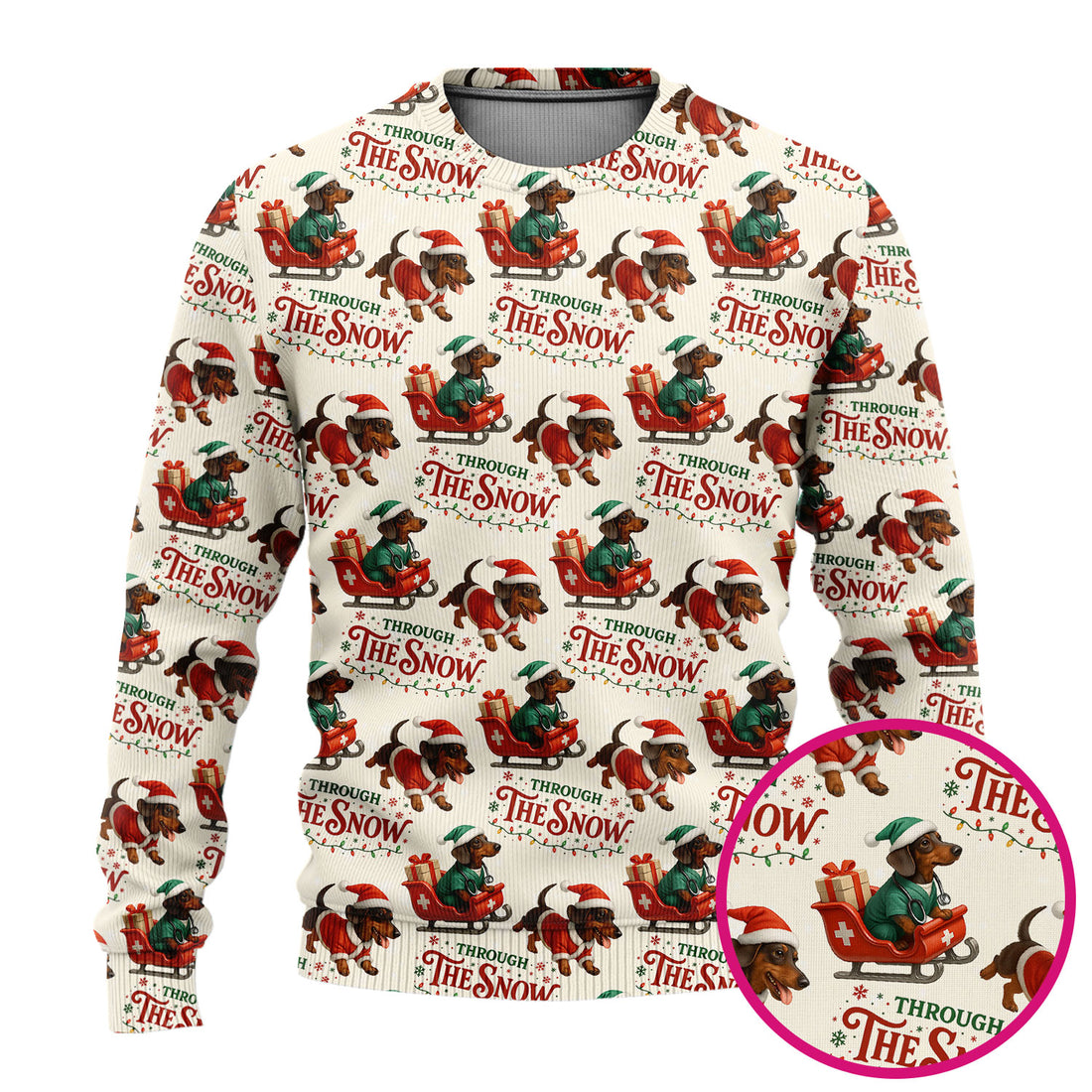 Dachshund Christmas Ugly Sweater, Cute Dog Nurse Sweater, Through The Snow Pattern Nursing Uniform