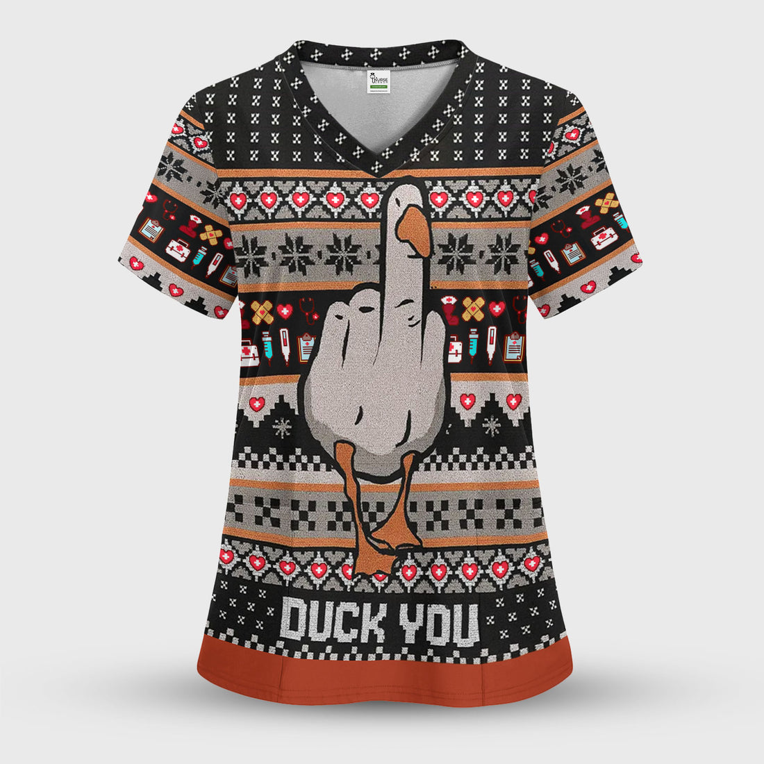 Funny Duck Scrub Top – Ugly Christmas Nurse Pattern – Humorous Medical Uniform For Nursing