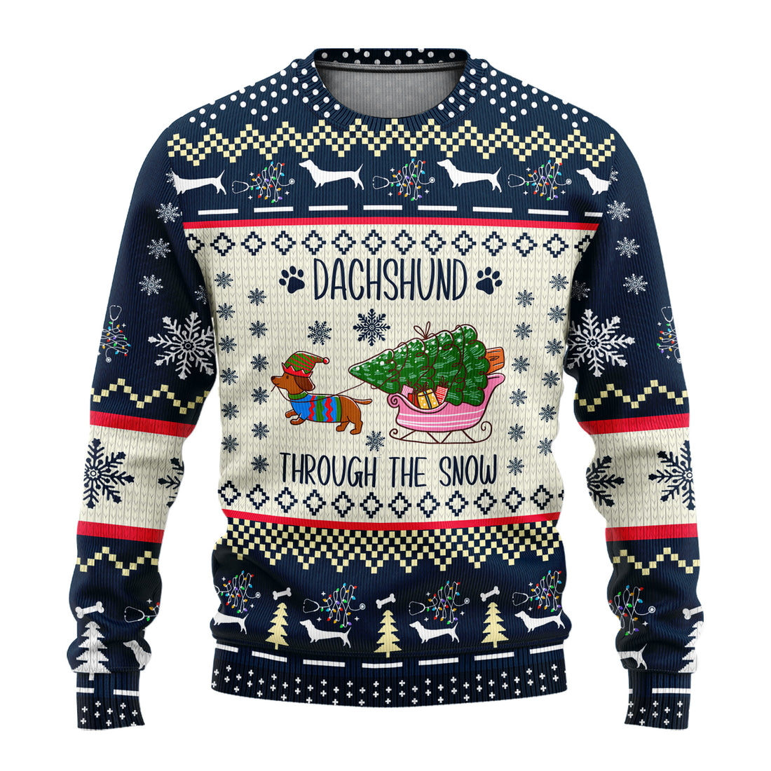 Dachshund Through the Snow - Funny Christmas Ugly Sweater - Wiener Dog Lover Gift - Holiday Medical Uniform