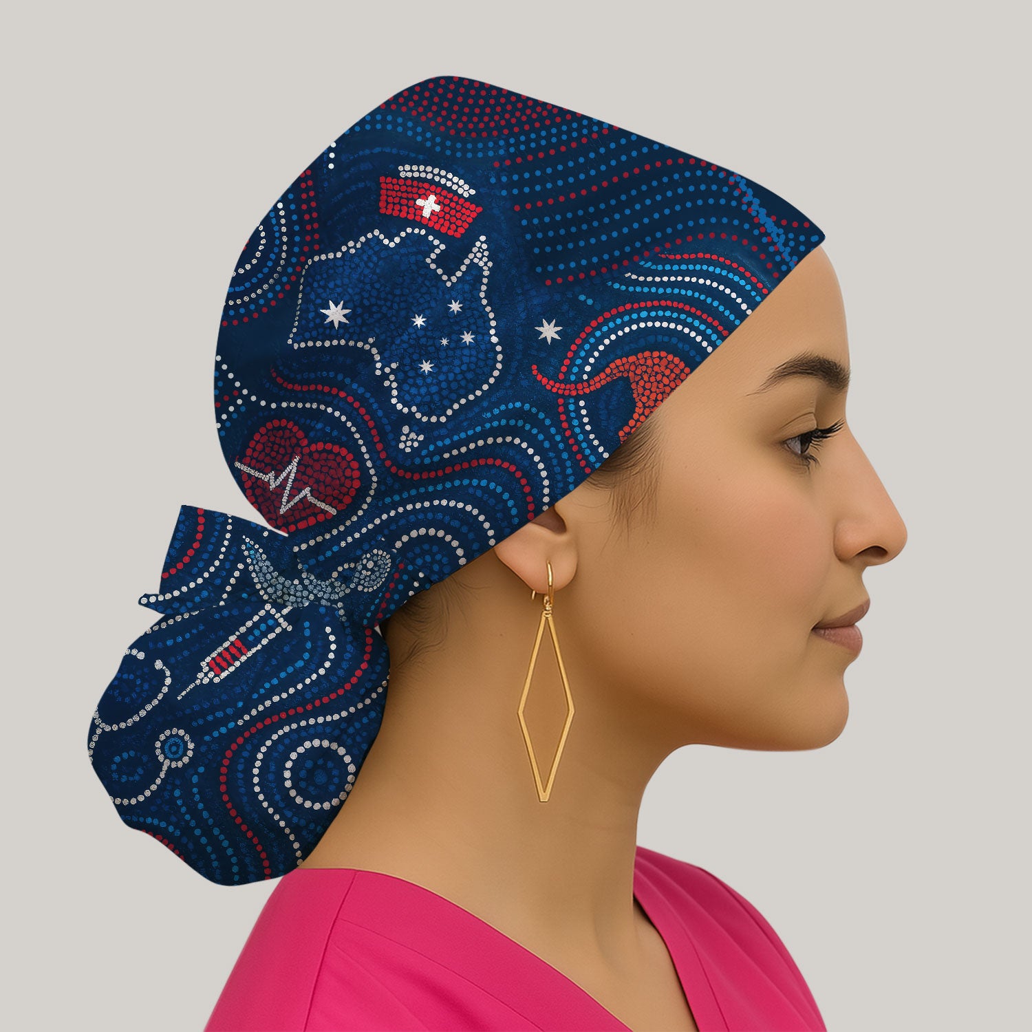 Ponytail Scrub Cap for Women - Cute Nurse Print