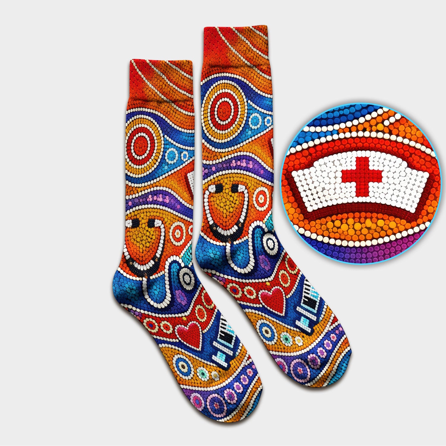 Aboriginal Dot Art Nurse Scrub Socks, Artistic Medical Pattern Sock, Breathable Fabrics Nursing Uniform