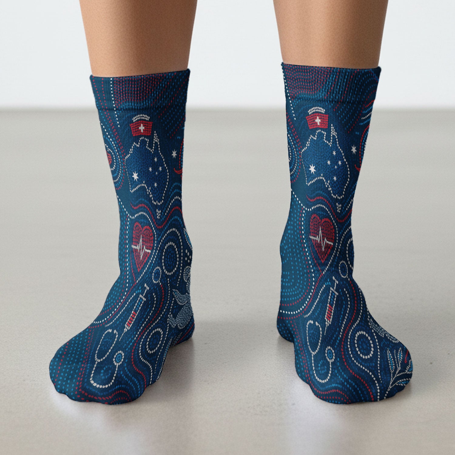 Aboriginal Dot Art Nurse Scrub Socks, Australian Kangaroo With Koala Pattern Sock, Breathable Fabrics Nursing Uniform