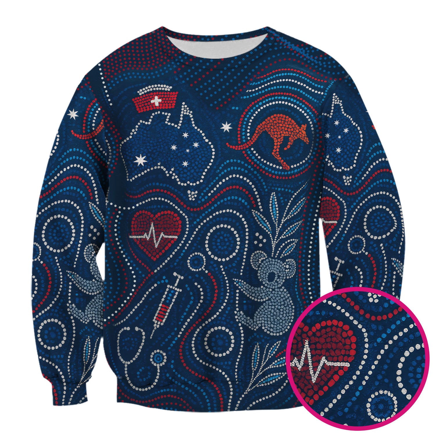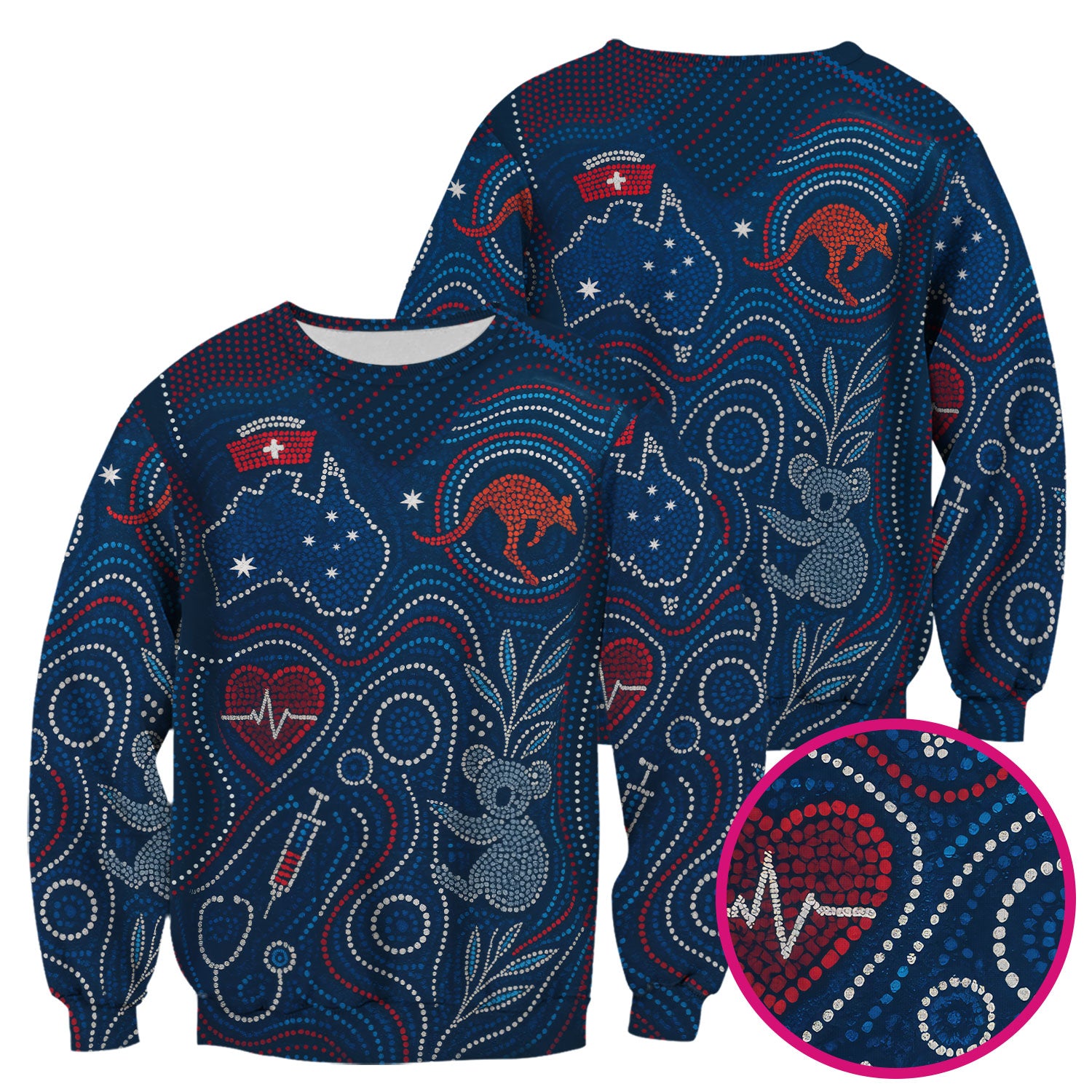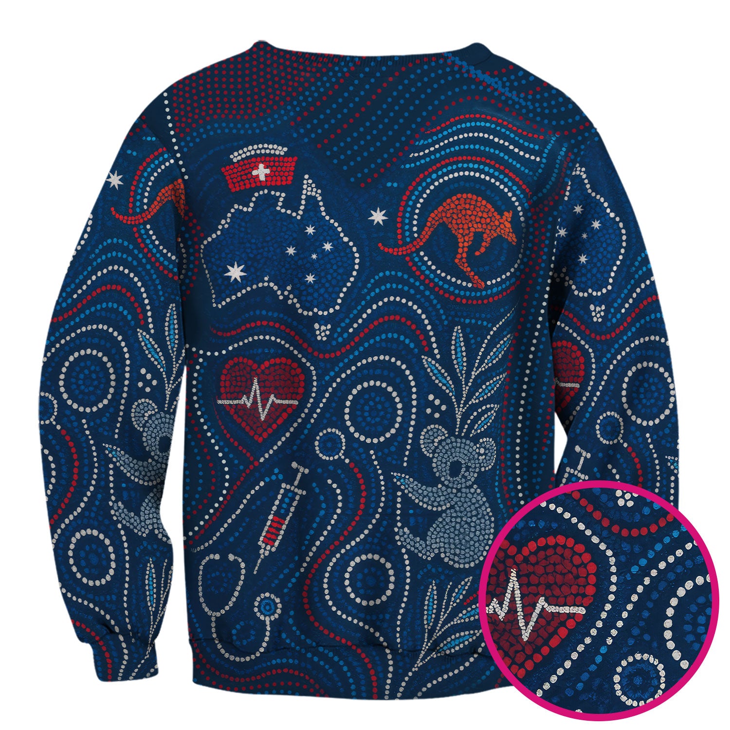 Aboriginal Dot Art Nurse Scrub Top, Australian Kangaroo With Koala Pattern Shirt, Breathable Fabrics Nursing Uniform