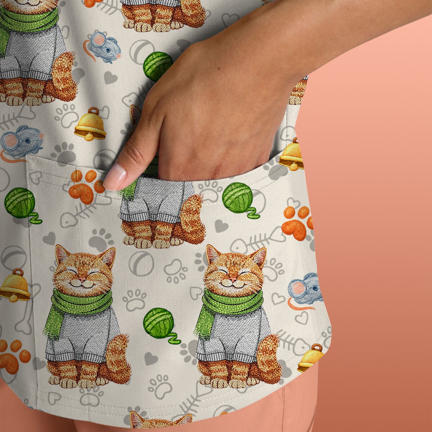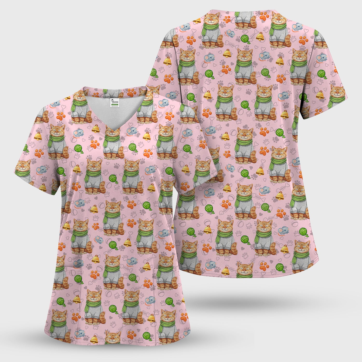 Adorable Cat Lover Nurse Scrub Top, Cute Cat Medical Pattern Shirt, Breathable Fabrics Nursing Uniform