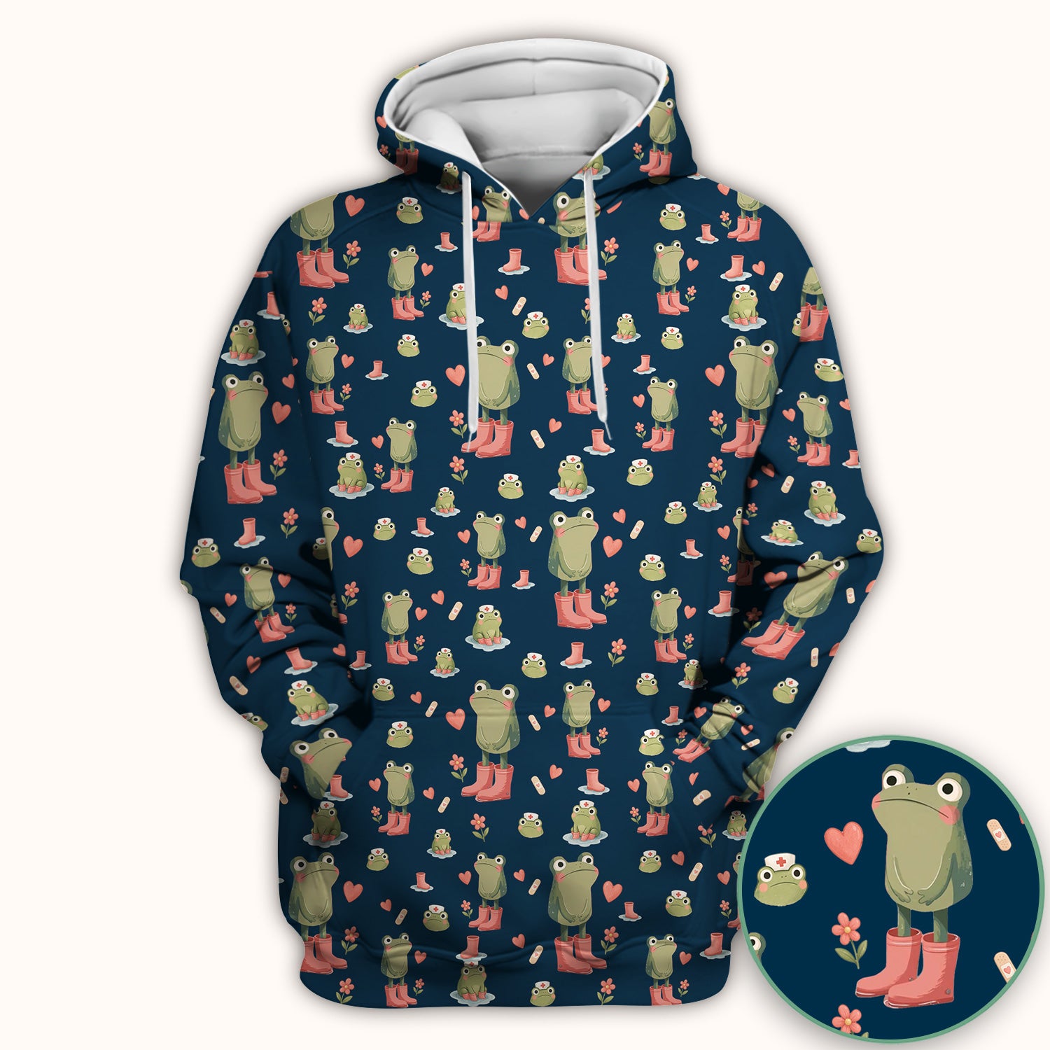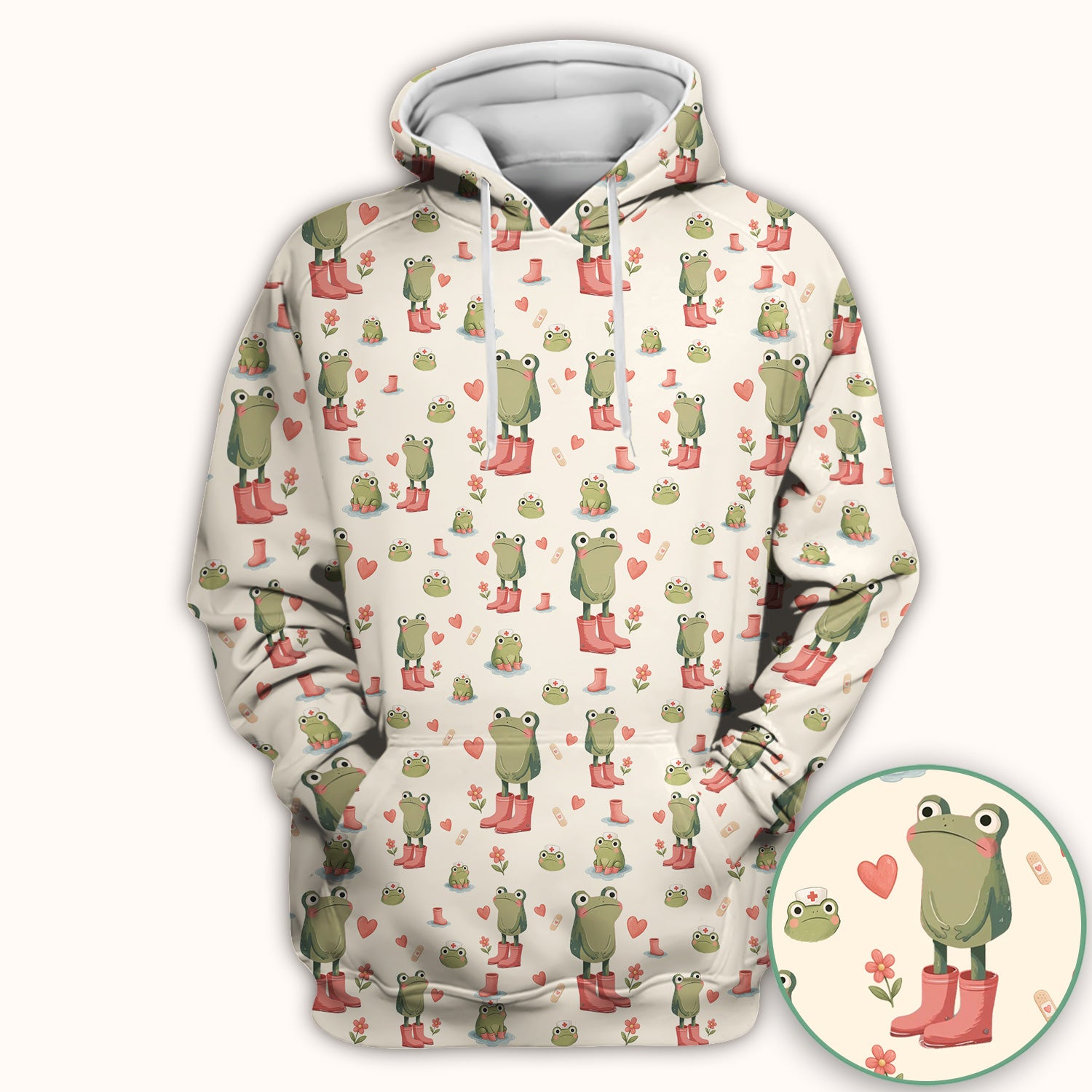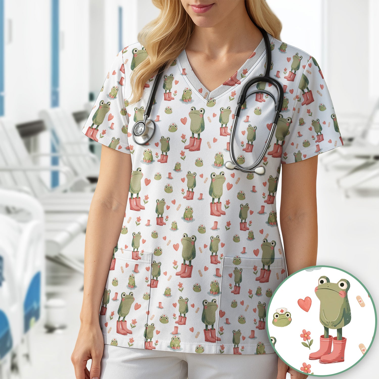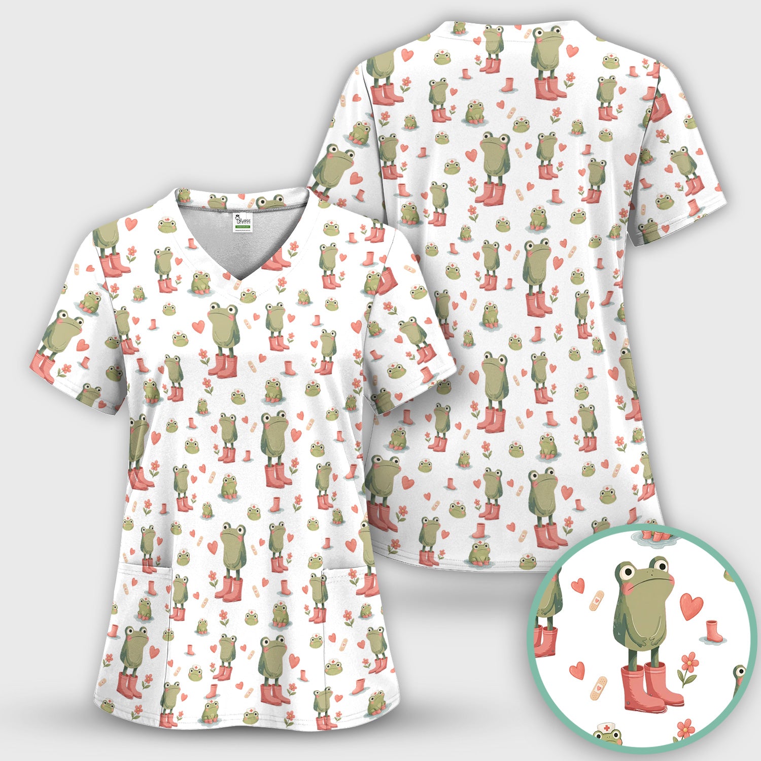 Adorable Frog Boots Heart Pattern Scrub Top, Comfortable Scrubs for Nurses
