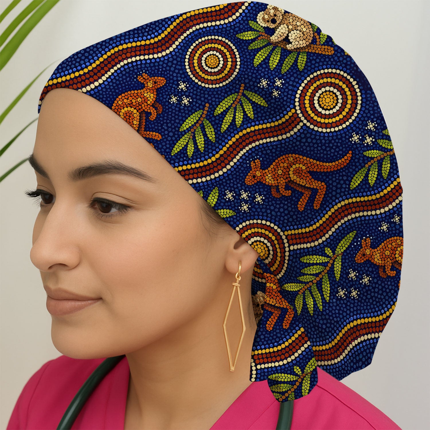Australian Aboriginal Dot Art Scrub Cap, Kangaroo ANd Koala Pattern Nurse Hat, Breathable Fabrics Nursing Uniform